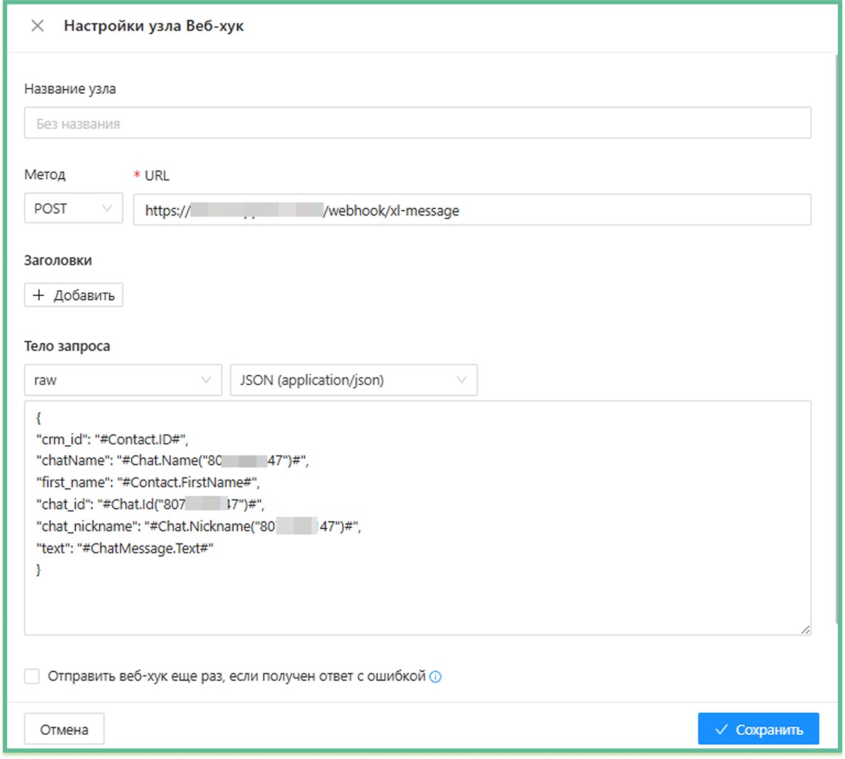 Шаг 1. XL-сценарий отправляет сообщение клиента через вебхук в n8n.
