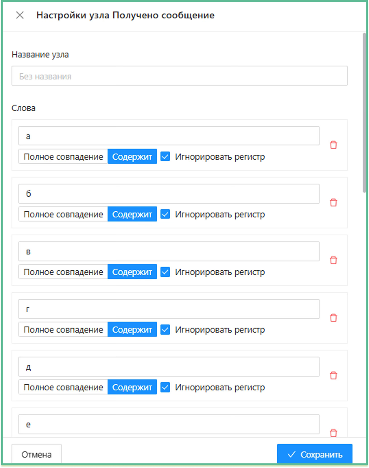 2. Настроили триггер на запуск при наличии любой буквы, чтобы ИИ-помощник реагировал на все сообщения.