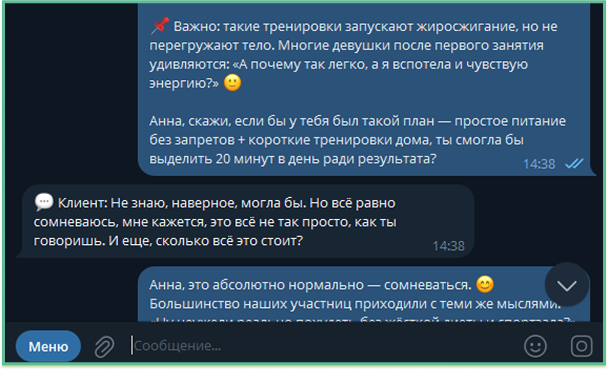 Пример диалога для ветки «сомневающегося клиента»: